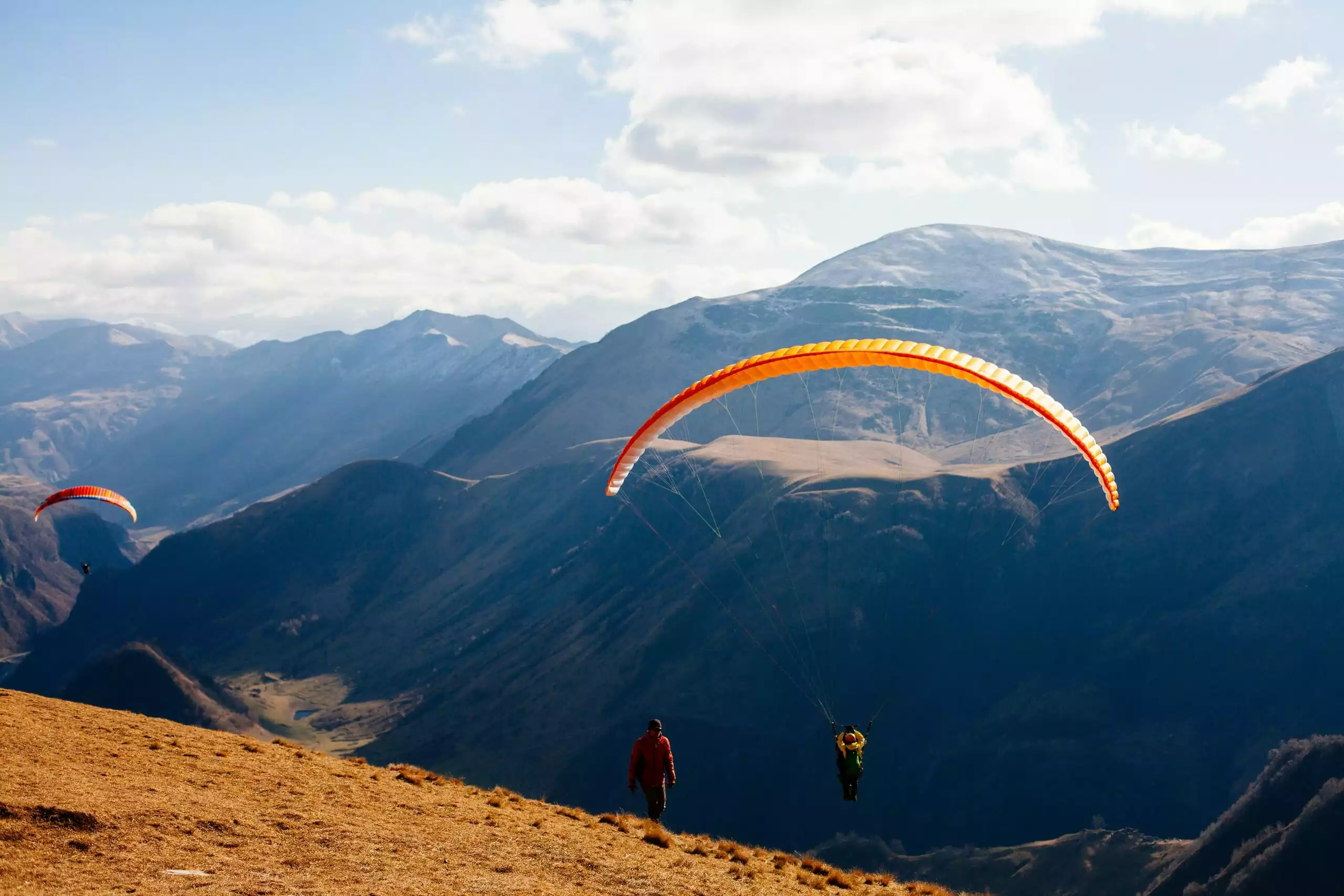 Ervaar het ongelooflijke uitzicht op de bergen van Georgië in een tandem-paraglider waarbij de piloot en passagier zitten in comfortabele harnassen en onder de vleugel hangen op een aantal lijnen met een hoge sterkte. Vluchten vertrekken vanuit de bergen bij het skigebied Gudauri. Luister voor het vertrek naar een korte briefing door de piloot. Er is geen ervaring of training vereist, maar de piloten zijn volledig gekwalificeerd en ervaren om een veilige en vreugdevolle vlucht te garanderen. Even later zul je door de lucht zweven, comfortabel zitten en je afvragen waarom je zo nerveus was. De werkelijke vliegtijd is afhankelijk van de weersomstandigheden op de dag. Vluchten duren over het algemeen iets van 20 tot 25 minuten. Afhankelijk van de weersomstandigheden en ons reserveringsschema is het mogelijk om uw vlucht te verlengen. Aangezien paragliders in stijgende luchtstromingen (thermiek) moeten rondcirkelen om langer op te blijven, is dit alleen mogelijk van de lente tot het midden van de herfst.