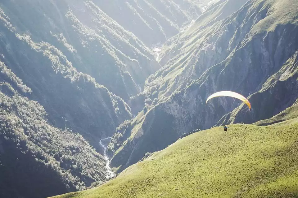 Neem een opwindende Paragliding vlucht van 20-25 minuten in combinatie met een professionele instructeur. Wees getuige van het ongelooflijke uitzicht op de bergen van Georgië. Ontvang een video van je ervaring aan het einde.