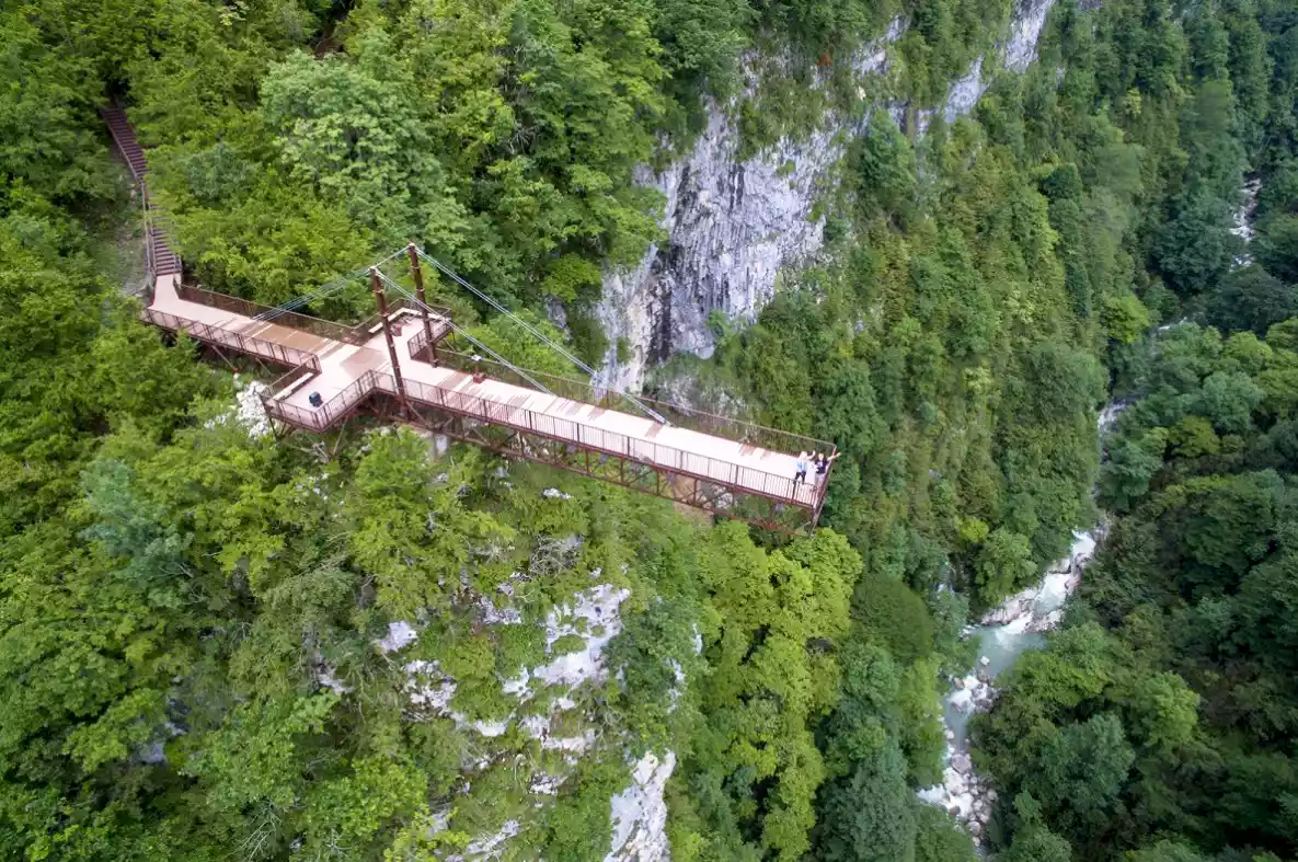 Dagtrip naar Bordzjomi: bekend om mineraalwater, mooie natuur en (optioneel) kabelbaan. Je kunt hier overnachten of terugkeren naar Koetaisi.