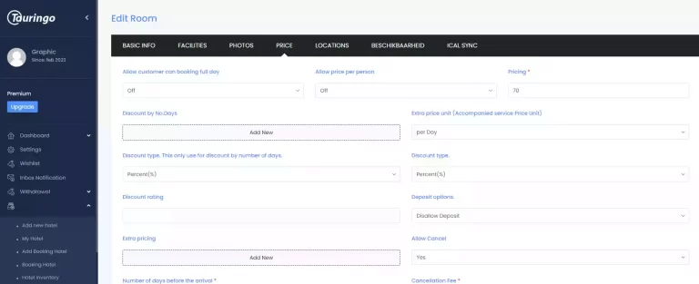 The descriptions on your Touringo.nl property page are automatically generated based on the info you provide on the Extranet. You can make changes to your facilities, room details, and location, and also correct inaccurate info in your property description.